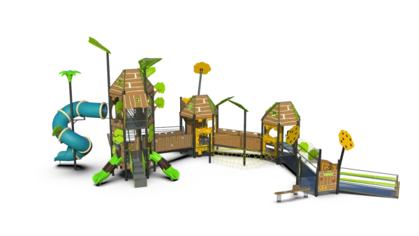 מתקן ענקי בנושא דרקון עם מגדלים גבוהים, מגלשת צינור ארוכה המדמה זנב דרקון, מגלשה אדומה וקיר טיפוס. מזמין ילדים להרפתקה מרשימה ומאתגרת של טיפוס, החלקה ודמיון.