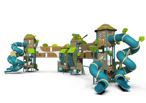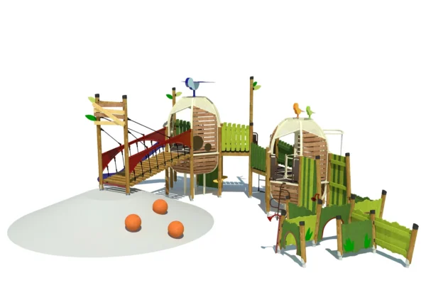 המבנה משלב שפע של אפשרויות משחק אך נשאר קומפקטי ואוורירי, מה שמאפשר השגחה קלה על הילדים ואף השתתפות פעילה של מבוגרים.